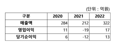 지난해 실적은 매출액이 322억3000만원으로 전년대비 51.9% 증가했다. 영업이익은 17억2900만원으로 흑자 전환했다.