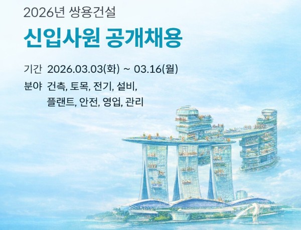 쌍용건설은 2026년 신입사원 공개 채용을 진행한다고 4일 밝혔다.