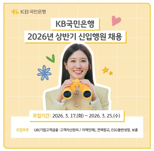 KB국민은행이 금융 환경의 변화에 대응하고 새로운 가치를 창출할 인재를 선발하기 위해 2026년 상반기 신입행원 채용을 실시한다고 18일 밝혔다.