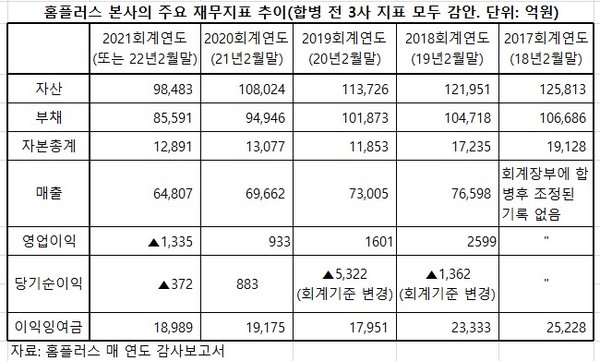 순자산(자본총계)도 2018년 2월말 1조9128억원에서 2022년 2월말 1조2891억원으로 크게 줄어들었다.