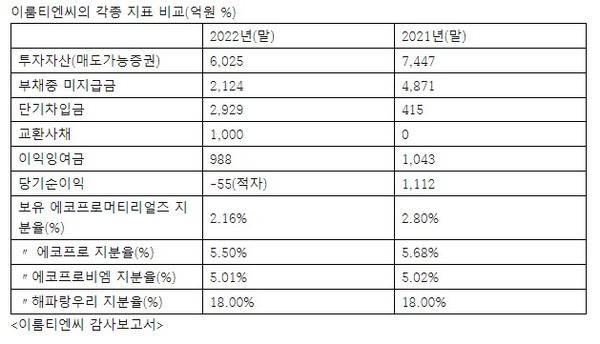 상장기업인 에코프로와 BM 보유지분 평가액만 지난 16일 종가 기준으로 각각 1.02조원과 1.3조원에 달한다. 이렇게 투자 지분은 많지만 이 회사의 작년 매출은 제로(0)다. 임직원수도 단 1명으로, 신희연이란 대표이사 1명 뿐이다. 직원이 아예 없다는 얘기다. 매출은 없고, 회사는 돌아가야 하다보니 작년에는 영업손실만 2.48억원을 기록했다. 계열사 투자지분만 관리하는 준 지주회사에 가깝다.
